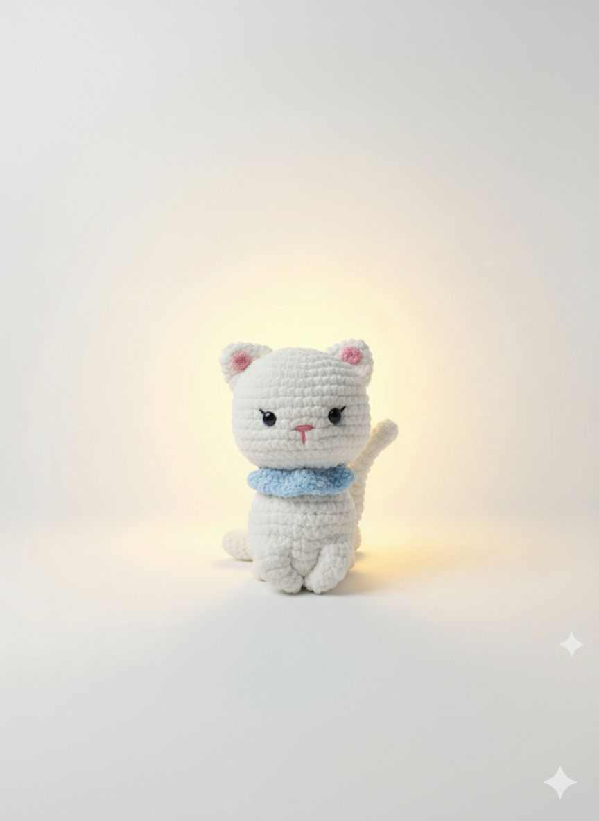 This cute cat crochet toy is soft, lightweight, and perfect for cuddling or decorating your space. Made with good-quality yarn, it has neat finishing, strong stitching, and a smooth texture for long-lasting use. Its adorable look makes it a lovely gift for kids, special occasions, or home decor.